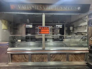 Puesto de mercado Variantes y Frutos Secos disponible para alquilar. - Varias opciones de negocio. - Las demás secciones funcionando. - Fachada con detalles en mármol y acero inoxidable. - Vitrina expositora de cristal. - Solo personas serias. - 4 metros de mostrador. - Zona Asamblea de Madrid / Entrevias.
