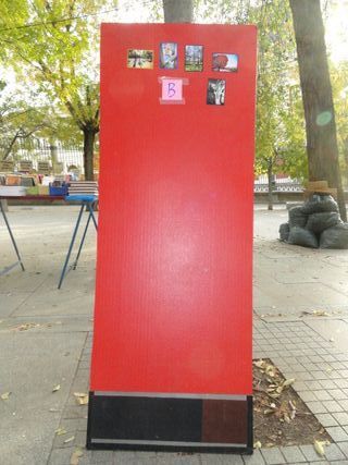 Expositor publicitario diseñado para uso exterior, con unas dimensiones de 160x60cm. Una plancha de polipropileno pintada en rojo, tiene propiedades magnéticas, para imanes, aunque puede usarse para cualquier motivo publicitario. La parte inferior (20cms) está reforzada con planchas de hierro y fieltros, para encajar perfectamente en la base que es de madera robusta. Peso del panel 6kg. Peso de la base 18kg. Para el traslado de la base hay unas cuerdas con mosquetón. Realizado artesanalmente. - Ideal para promociones y eventos al aire libre. - Superficie amplia para visualización de mensajes. - Diseño funcional y fácil de instalar.