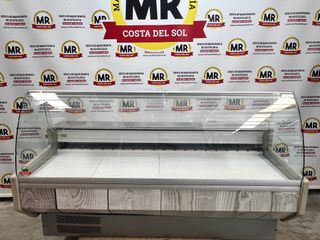 Vitrina expositora con diseño moderno y acabado frontal imitando madera. Cristal curvo. Dispone de 3 puertas traseras de reserva. Producto de OCASIÓN, listo para ser usado, totalmente revisado y limpio de grasa. Cuenta con 3 meses de garantía en piezas. IVA no incluido. Posibilidad de envío por toda España, todas las medidas están disponibles en las fotos. Ideal para negocios de hostelería, bar, restaurante, chiringuito, kiosco, cafetería, churrería, asador, marisquería, freiduría, buffet, etc. Para más información puede contactar al 642140504