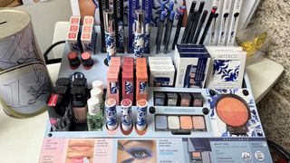 Expositor de la colección Ocean & Light de ArtDeco. Incluye varios productos de maquillaje. Edición limitada. - Diseño inspirado en azulejos portugueses. - Incluye labiales, esmaltes, sombras y delineadores. Solo falta 1 rubor Precio NO NEGOCIABLE Incluye Cartaz