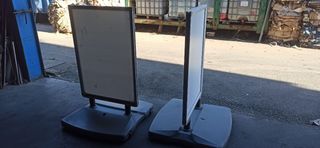 cartel anuncio. expositor de pie A1 doble cara semi nuevo color gris y terminación en aluminio (uno de ellos pierde agua y al otro le falta el tapon)