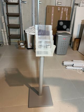 Se venden dos expositores de carteles. Son de color plata y están en buen estado. - Medidas A4. - Material: metal. - Soporte de pie. Solo un mes de uso.