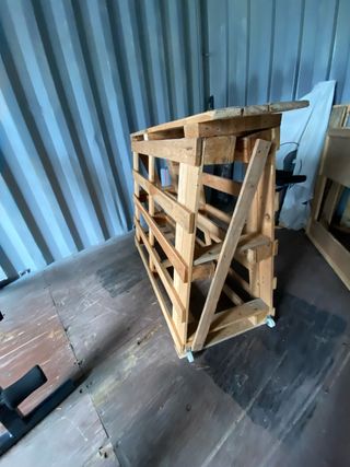PLINGTON, POTRO OPOSICIONES - Construcción robusta con listones de madera. - Base con ruedas para facilitar el movimiento. - Diseño abierto y versátil.