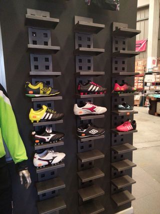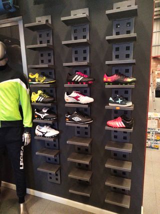 6 tiras de 10 baldas cada uno, expositor de metal pintura al horno y de tacto como si fuera arenilla, máxima calidad (fueron comprados en la antigua Tecam), las tiras se fijan a cualquier tipo de superficie con sólo 6 tornillos. El precio es por una tira con 10 baldas es de €100.00, medidas de las tiras 178cm de alto y 17 cm de ancho, balda 22 cm de ancho por 13 cm de profundidad
