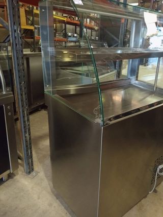 Cubierta expositora de cristal curvado para hostelería, ideal para mostradores. Medidas aproximadas de 120cm. - Estructura de cristal transparente y resistente. - Base negra. - Perfecto estado de conservación.