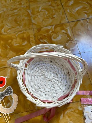 Bonita cesta, en perfecto estado y como nueva. La usé para llevar las damas de honor los pétalos en mi boda. Mas o menos de diámetro hace 28cm y el asa de alto 39cm