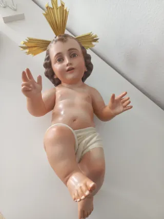 Figura del Niño Jesús con una hermosa aureola dorada. - Detalle de las manos y pies. - - Rostro expresivo.