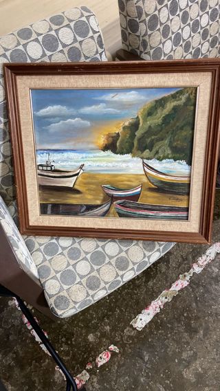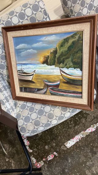 Precioso cuadro pintado al óleo sobre lienzo, con una escena marina y barcas en la playa. La obra está firmada por el artista C. Mestres. - Pintura sobre lienzo. - Escena de playa con barcas. - Firmado por C. Mestres. Medidas: Ancho 67cm, Alto 57cm