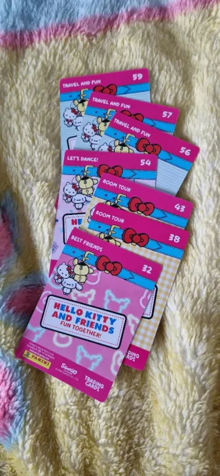 Colección de tarjetas de Hello Kitty y sus amigos. - Tarjetas temáticas de Travel and Fun, Let's Dance!, Room Tour y Best Friends. - Incluye números de tarjeta 59, 57, 56, 54, 43, 38 y 32. (Y muchos más) - Diseño con personajes de Sanrio. - Tarjetas de Trading Cards de Panini.
