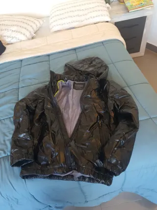 Tengo muchas cajas de ropa que nos va pequeña esta buen estado Hay cosas que no estan estrenadas Conjunto de prendas de vestir de diferentes estilos y tallas. - Chaqueta de ante marrón. - Pantalones vaqueros. - Camisa azul marino. - Varias camisetas y otras prendas.