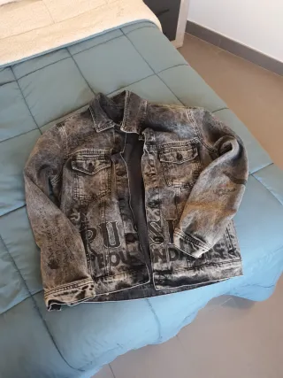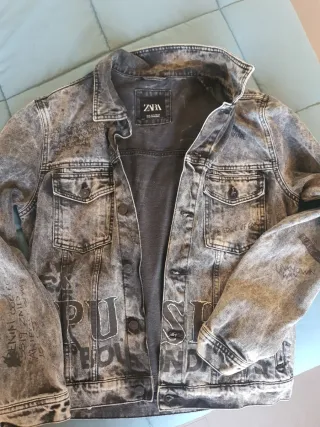 Chaqueta vaquera desgastada con letras