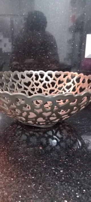 Elegante bandeja con un diseño calado de corazones. Perfecta para presentar fruta, pan o como elemento decorativo. - Material: plastico - Diseño: Calado con forma de corazones - Color: verde fuerte