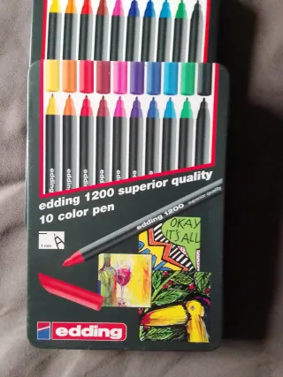 Se venden dos cajas de rotuladores Edding 1200, cada una con 10 colores. - Modelo: Edding 1200 - Calidad superior - 10 colores por caja