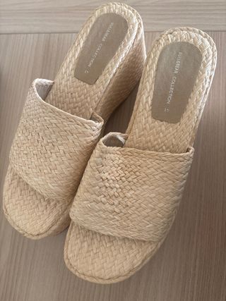 Sandalias de cuña de la marca Pull&Bear. - Material de rafia. - Diseño abierto. - Talla 41.