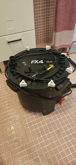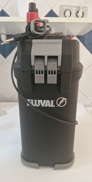 Filtro externo para acuarios Fluval FX4. Diseñado para mantener el agua cristalina. Esta en perfecto estado tiene muy poco uso ya que lo compre y se me rompio la pecera y ha estado parado desde entonces. Incluyo filtro, variedad de mangueras, calentador externo JBL y sifonador. - Modelo FX4. - Conexiones de entrada y salida marcadas. - Cierres de seguridad en la tapa.