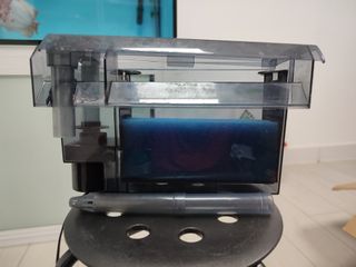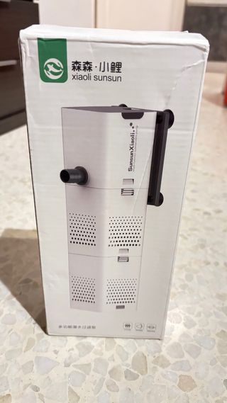 Filtro externo para acuario de la marca Xiaoli Sunsun. Diseñado para colgar en la parte trasera del acuario. - Diseño compacto y eficiente. - Incluye salida de agua. - Fabricado en plástico blanco y negro.