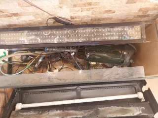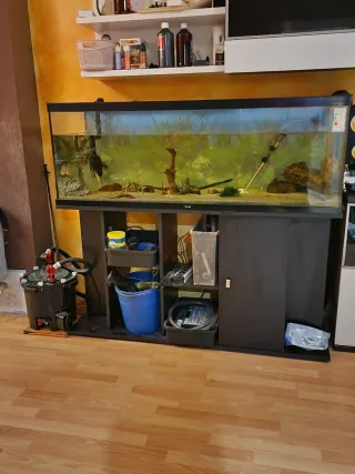 Acuario de 240 litros, listo para usar. Incluye: • Acuario Aquael 240L • Tapa original con iluminación • Filtro externo FX6 (muy potente) • Calentador + termómetro digital • Arena • Decoración • Mueble a juego • Mangueras y accesorios • Extras gratis Todo funciona correctamente. 📍 La Mata 03188 🚚 Recogida en mano 📌 Se vende completo