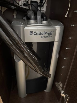 Filtro externo para acuario de la marca JBL, modelo CristalProfi greenline. Diseñado para mantener el agua limpia y clara. - Color plateado y negro. - Incluye tubos de entrada y salida.con material filtrante! 3 meses de uso