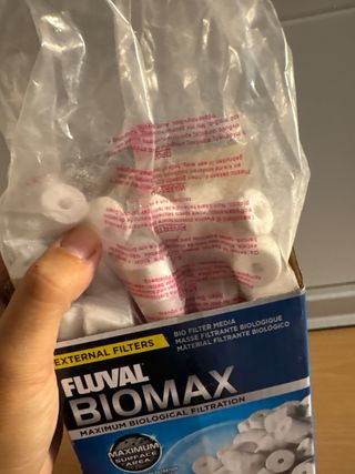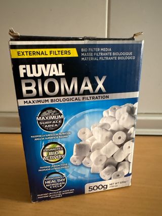 Medio filtrante biológico Fluval Biomax para filtros externos. - Máxima superficie para filtración. - Promueve la bioactividad. - Mantiene un ciclo de nitrógeno saludable. - La caja está empezada pero tiene casi todo porque no lo use más