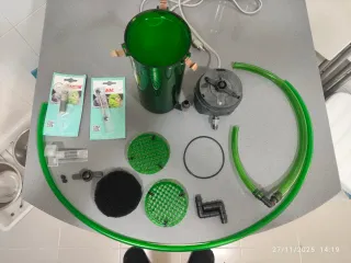 Se vende filtro externo para acuario, con todos sus componentes. - Incluye cestas para material filtrante. - Mangueras y tubos de conexión. - Esponjas y material filtrante cerámico.
