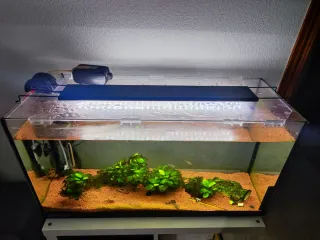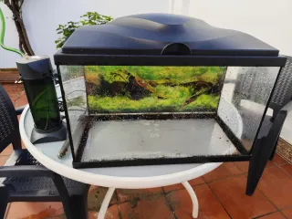Se vende acuario al completo. - Urna Juwel de 60L con resiliconado hace un año (no vas a tener fugas en mucho tiempo). Tubo fluorescente de acuario puesto nuevo hace tres años. - Filtro externo Hydor. - Calentador incluido. - Puedo incluir en el precio la graba, algunas decoraciones y las plantas naturales. Es un acuario que está al día, mantenido y con muchos componentes nuevos.