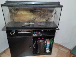 Se vende acuario completo de 120 litros con su mueble. Regalo acuario pequeño unos 50l ,sin el filtro externo 130euros - Incluye calentador. - Incluye filtro seminuevo 1400l/h - Mueble a juego. El acuario se encuentra en Zafra