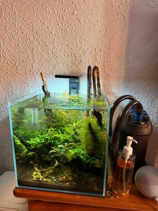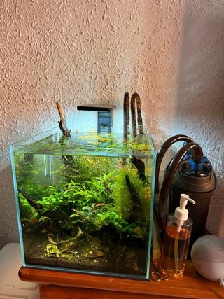 Acuario Blau de 30 litros, ideal para crear un ecosistema acuático en casa. Incluye plantas naturales y elementos decorativos. Lo vendo con luz led y con filtro externo, también si quieres con todo lo que ves en el acuario. - Diseño moderno y compacto. - filtro externo marca conocida - Iluminación LED. negociable el precio