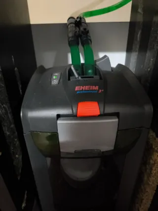 Filtro externo Eheim Professional para acuarios. Diseñado para mantener el agua cristalina y saludable.para acuarios desde 120l a 220l. alguna vez se ha salido agua cundo lo limpiaba pero si funciona y limpia bien todo. le tienes que comprar una piedrecitas para que limpie mejor ( si quieres ) sino no hace falta. - Marca: Eheim - Modelo: Professional - Conexiones de entrada y salida de agua. - Palancas de cierre para facilitar el mantenimiento.