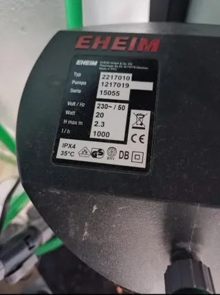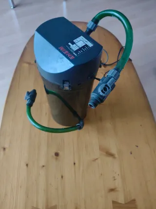 Filtro externo para acuarios de la marca Eheim. Diseñado para mantener el agua limpia y saludable. - Color negro. - Asa superior para facilitar el transporte. - Manguera y enchufe incluidos. - Sólo que el calentetador se me estropeó el camble y lo corté por lo demás funciona todo perfecto y unos de los clip lo perdi limpiando el filtro.