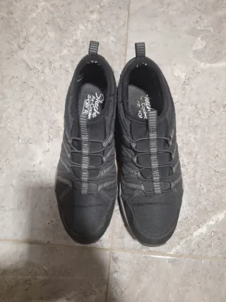 Zapatos Skechers negros con cordones elásticos. Talla 38.5 hago envios - Parte superior de malla transpirable. - Plantilla Air-Cooled Memory Foam. - Suela flexible.