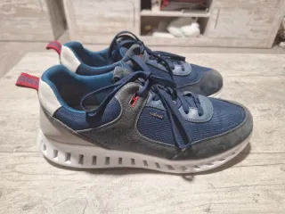 Zapatillas deportivas Geox en tonos azules y grises, con detalles en blanco y rojo.talla 44 hago envios - Cierre con cordones. - Suela blanca con diseño. - Tirador trasero.