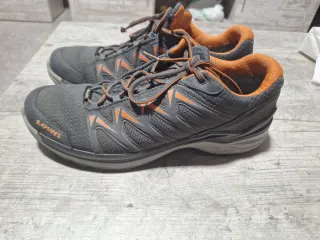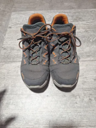 Zapatillas Lowa de senderismo o trekking en color gris con detalles en naranja.talla 44 hago envios - Parte superior de malla transpirable. - Suela de goma para un buen agarre. - Cierre con cordones.
