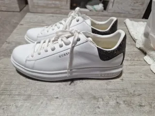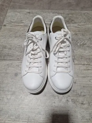 Zapatillas Guess de color blanco con detalles del logo.talla 45 solo tienen 1 puesta. Hago envi9s - Diseño clásico. - Detalle del logo Guess en la parte trasera. - Logo Guess en el lateral.