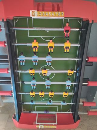 Se vende futbolín para niños, en buen estado. Ideal para jugar en casa. - Medidas compactas, perfecto para espacios reducidos. - Diseño resistente y duradero. - Incluye todas las piezas necesarias para jugar.