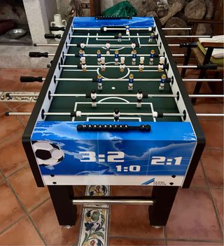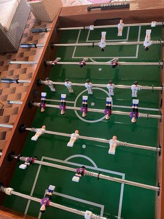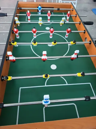 Futbolín de estilo profesional . Ideal para disfrutar en casa.No se ha usado practicanente nada. - Diseño robusto y duradero. - Campo de juego verde. - Varillas metálicas con jugadores. - Incluye asas para el control.