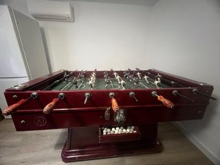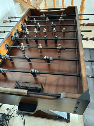 Futbolín de estilo profesional, ideal para disfrutar en casa. Siempre en interior muy cuidado. Los jugadores estan nuevos y lis manguitos perfectos. Medidas: 76cm x 140cm y altura 88,5 cm