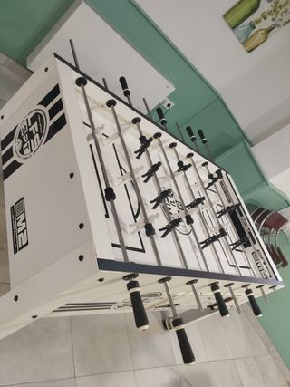 Se vende futbolín de mesa marca SportTable. Es una mesa de futbolín profesional para campeonatos está en muy buen estado, ideal para disfrutar de emocionantes partidos. - Marca: SportTable - Color: Blanco - Incluye 22 jugadores