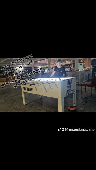 Futbolín M2 Sporttable en buen estado. Ideal para pasar ratos divertidos. - Diseño moderno y robusto. - Campo de juego iluminado.leds - Monedero Electrónico - Barras Irrompible - Patas de Metal con Niveladores - Puños profesionales e intercambiables. Etc.. Tik tok : Futbolín sporttable Tik tok : Miguel. machine