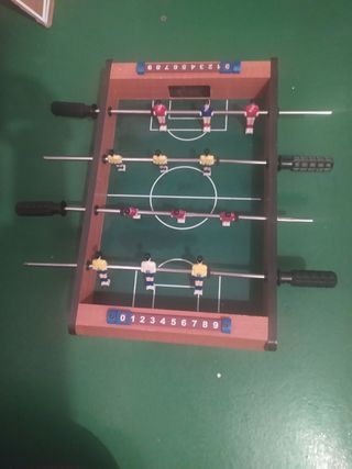futbolin de sobremesa, de unos 50x31 cm y 10 cm de alto. para jugar 2 personas. Incluye 2 pelotas. No dispongo de caja.