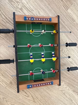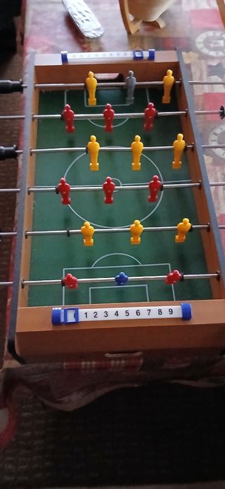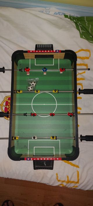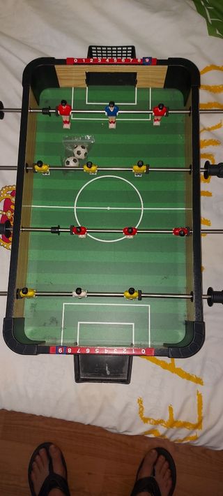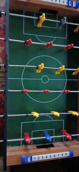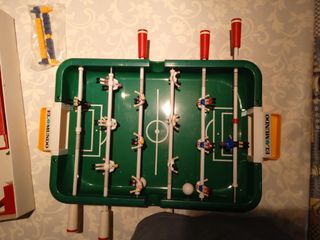 Se vende futbolín de mesa nuevo . Es un juego de mesa pequeño y portátil, ideal para jugar en casa. - Medidas compactas. - Diseño deportivo. - Incluye 2 barras con jugadores.