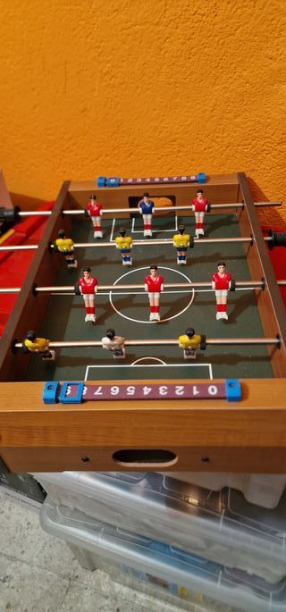 Futbolín para pequeños muy bien cuidado. Presenta marcador en cada portería con su respectiva bola de juego.
