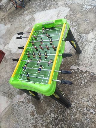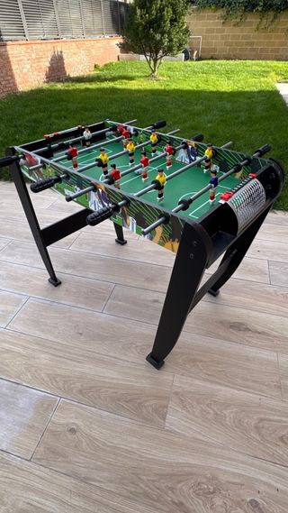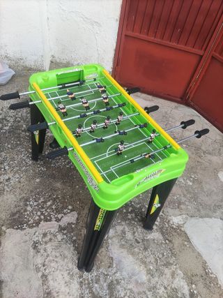 Futbolín de tamaño grande, perfecto para horas de diversión. Mide 1m largo por 55 ancho,patas 83cm.lleva 2 pelotas. - Campo de juego verde con diseño de liga. - Varillas metálicas con jugadores. - Marcador integrado.