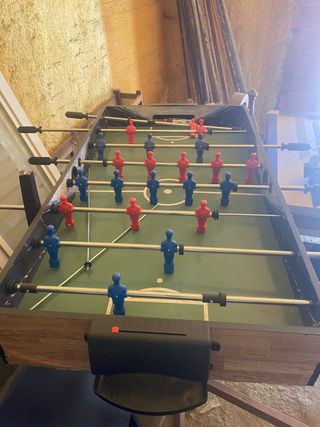 Mesa de futbolín en buen estado.Contiene billar , bolos ,hockey y ping pong. Estan todos los accesorios incluido Ideal para jugar en casa con amig@s o familia. - Medidas: 109,5cm x 60,6cm x 82,3cm - Perfecta para divertirse.