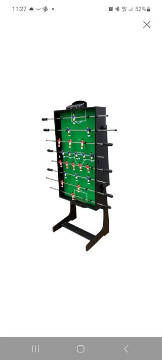Futbolín plegable en Vertical ,marca el Corte Ingles con estructura de madera (para mayor estabilidad) Fué regalo de Navidad y vendo por no uso. Con medidas detalladas para su fácil transporte y almacenamiento. - Largo: 124 cm - Ancho: 59,5 cm - Alto: 79 cm - Profundidad: 48 cm - Altura total: 157 cm