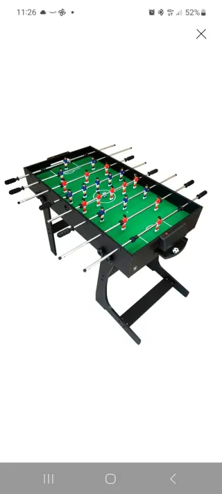 Mesa multijuegos versátil con cuatro opciones de entretenimiento. - Se puede plegar para guardarlo. - Incluye futbolín, mesa de billar. hockey de aire y ping-pong. - Estructura robusta con patas estables. -En muy buen estado, se ha usado muy poco. -Medidas 71cms alto, 60 ancho, 110cms largo. - Con todos los accesorios