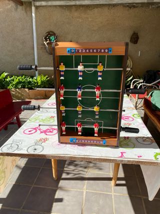 Se vende futbolín de mesa en buen estado. Es un juego divertido para toda la familia. - Medidas compactas, ideal para espacios reducidos. - Diseño moderno y atractivo. - Incluye todas las piezas necesarias para jugar.