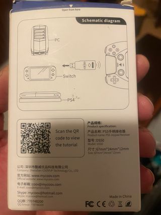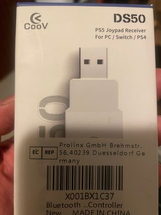 Adaptador inalámbrico DS50 para conectar mandos de PS5, Switch y PS4 a tu PC. Permite la conexión Bluetooth. - Modelo: DS50 - Compatibilidad: PS5, PC, Switch, PS4 - Conexión: Bluetooth - Fabricante: CooV - Importador: Prolinx GmbH
