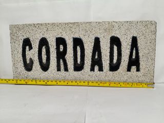 Cartel de piedra con la palabra CORDADA grabada. Pasta ceramica. - Material: Piedra. - Texto: CORDADA en letras negras.