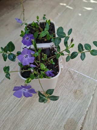 Dos Plantas con flores moradas - Flores de color morado intenso. - Hojas verdes y brillantes. - Ideales para decorar espacios pequeños.