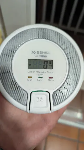 Detector de monóxido de carbono X-Sense modelo CO03D. Perfecto estado. - Pantalla digital. - Indicadores LED de fallo, encendido y alarma. - Botón de prueba y silencio.
